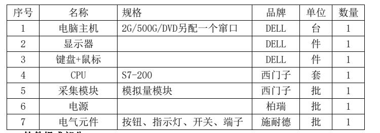 DELL電腦、西門子PLC、電氣元件、通訊線、電源線及控制柜組成。
