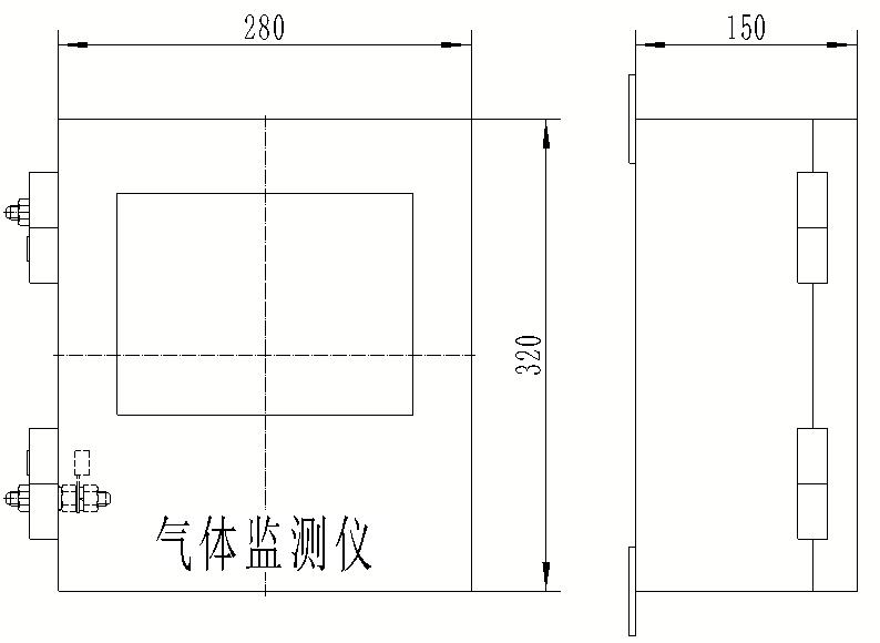 氣體監(jiān)測儀主機(jī)為不銹鋼壁掛箱體,帶透明玻璃視窗,箱體尺寸預(yù)計(jì)為:280*320*150mm(長*高*厚)。箱體為鉸鏈?zhǔn)角吧w開門結(jié)構(gòu),帶有小門鎖。