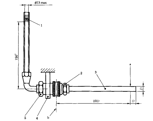 將接頭總成放入到試驗裝置中。將試驗油注人試驗裝置至 75cm的高度。距離鎖定裝置的測量棒的軸線為 IOD 處,施加 50 N 載荷垂直于接頭中心線,D等于GB/T 2351中的軟管公稱內(nèi)徑。